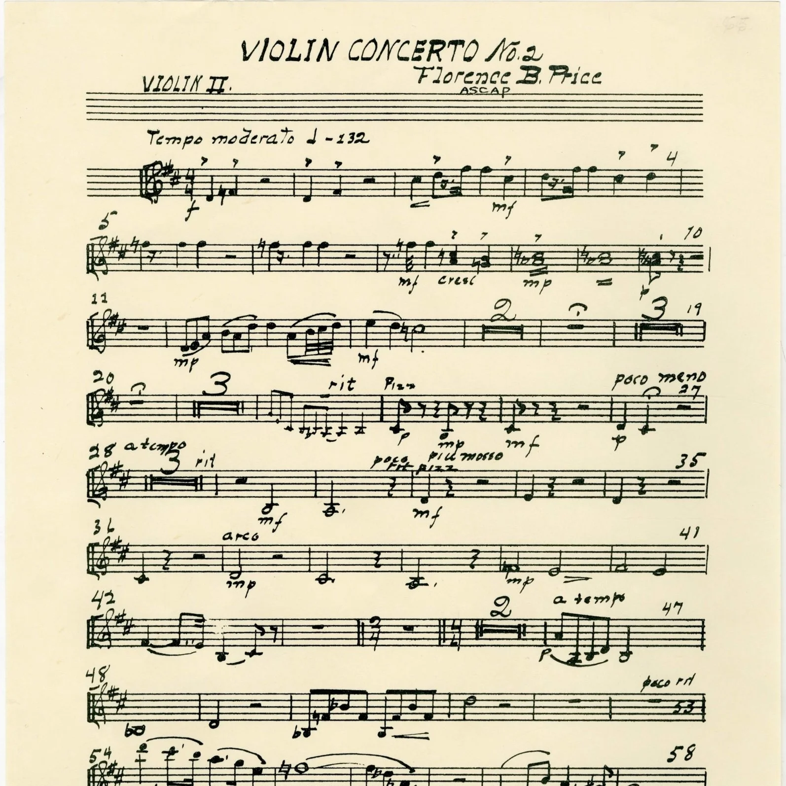 Original violin 2 part for Price's Violin Concerto No. 2.